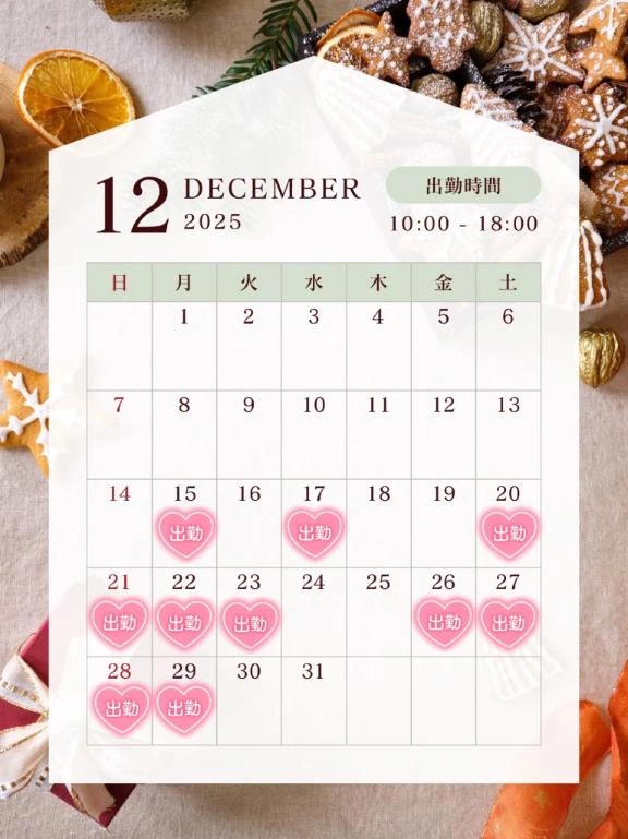 今月の出勤予定日はこちらですっ🗓❣↓