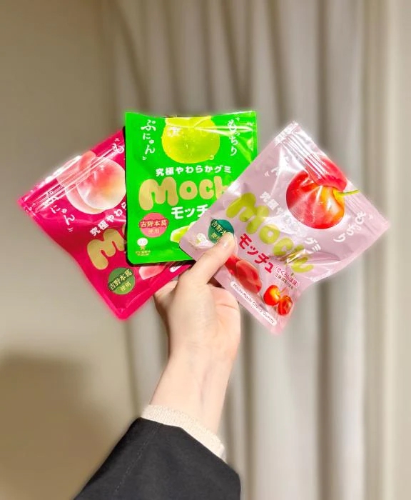 私の中で今1番美味しいグミ!トランプみたいな持ち方しちゃった笑触り心地がグミっていうよりお餅?みたいな感じで、でも食べるとグミなの!毎日食べたいからストック買いしたいなぁ